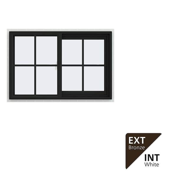 36 in. x 24 in. V-2500 Series Bronze Exterior/White Interior FiniShield Vinyl Right-Handed Sliding Window Colonial Grids