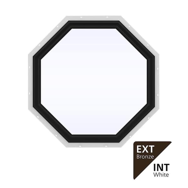 36 in. x 36 in. V-2500 Series Bronze Exterior/White Interior FiniShield Vinyl Fixed Octagon Window w/ Low-E 366 Glass