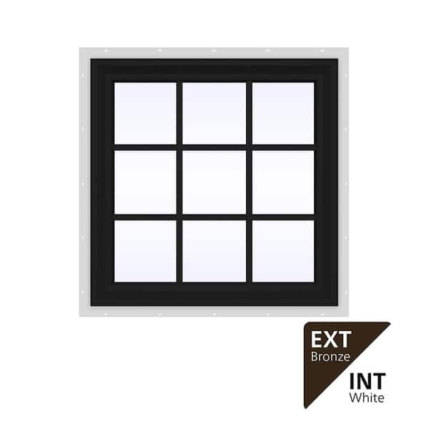 36 in. x 36 in. V-2500 Series Bronze Exterior/White Interior FiniShield Vinyl Fixed Picture Window, Colonial Grid/Grille