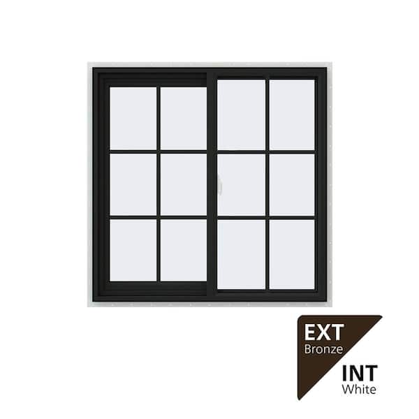 36 in. x 36 in. V-2500 Series Bronze Exterior/White Interior FiniShield Vinyl Left-Handed Sliding Window w/Colonial Grid
