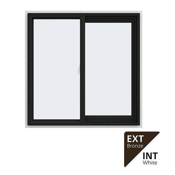 36 in. x 36 in. V-2500 Series Bronze Exterior/White Interior FiniShield Vinyl Right-Handed Sliding Window w/Mesh Screen