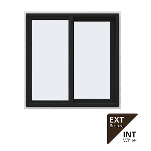 36 in. x 36 in. V-4500 Series Bronze Exterior/White Interior FiniShield Vinyl Right-Handed Sliding Window w/Mesh Screen