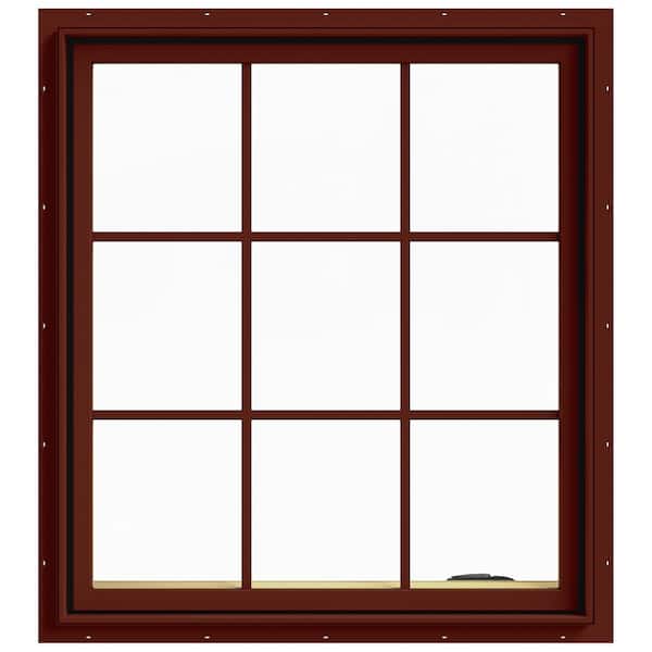 36 in. x 40 in. W-2500 Series Red Painted Clad Wood Right-Handed Casement Window with Colonial Grids/Grilles