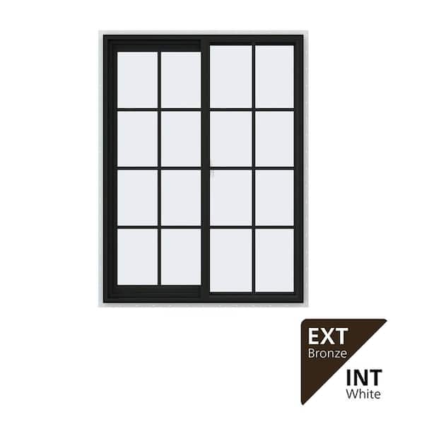 36 in. x 48 in. V-2500 Series Bronze Exterior/White Interior FiniShield Vinyl Left-Handed Sliding Window w/Colonial Grid
