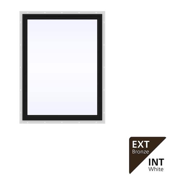 36 in. x 48 in. V-2500 Series Bronze Exterior/White Interior FiniShield Vinyl Picture Window w/ Low-E 366 Glass