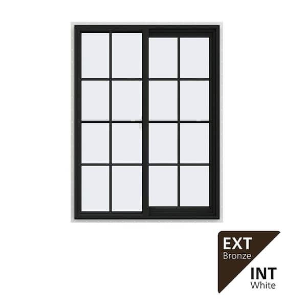 36 in. x 48 in. V-2500 Series Bronze FiniShield Vinyl Right-Handed Sliding Window with Colonial Grids/Grilles