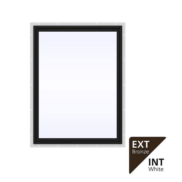 36 in. x 48 in. V-4500 Series Bronze Exterior/White Interior FiniShield Vinyl Picture Window w/ Low-E 366 Glass