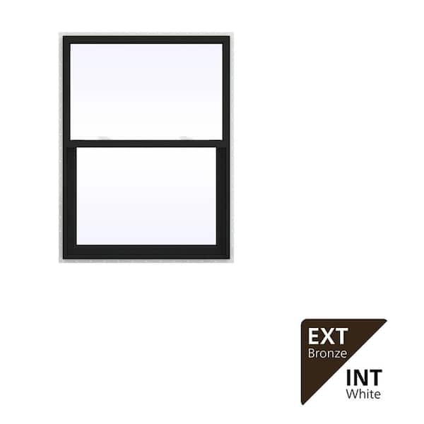 36 in. x 54 in. V-2500 Series Bronze Exterior/White Interior FiniShield Vinyl Single Hung Window, Fiberglass Mesh Screen