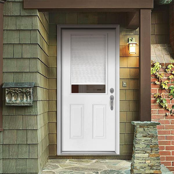 36 in. x 78 in. 1/2 Lite Primed Steel Prehung Left-Hand Inswing Entry Door w/Mini-Blinds and Brickmould