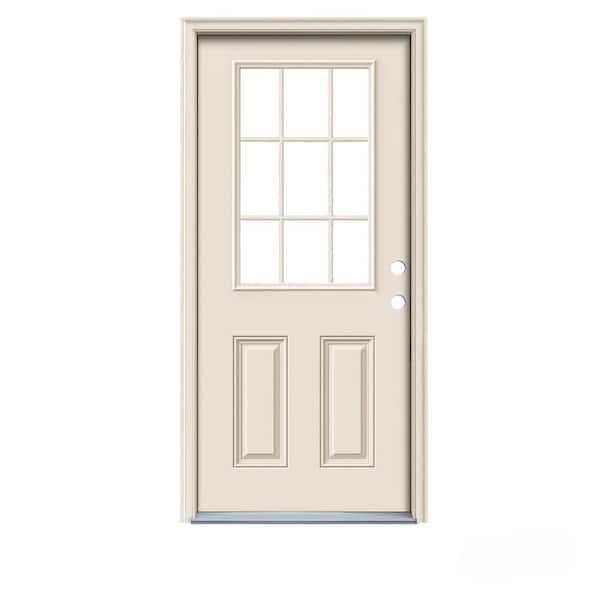 36 in. x 78 in. 9 Lite Primed Fiberglass Prehung Left-Hand Inswing Entry Door w/Brickmould