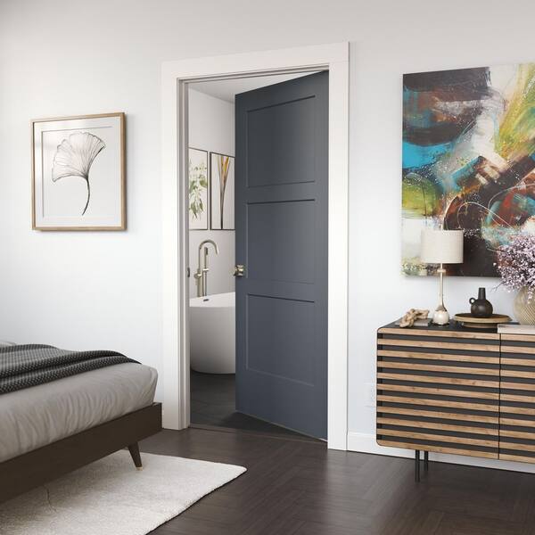 36 in. x 80 in. 3 Panel Birkdale Right-Handed HollowCore Gray Painted Molded Single Prehung Interior Door w/Nickel Hinge