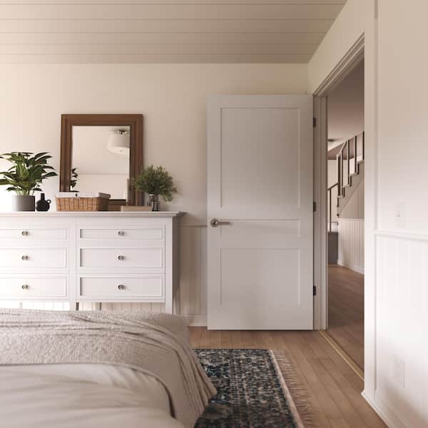 36 in. x 80 in. 3 Panel Flat Right-Handed Solid Core Primed Composite Single Prehung Interior Door w/ Satin Nickel Hinge