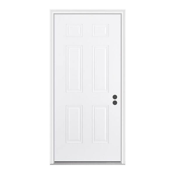 36 in. x 80 in. 6-Panel Primed White Fiberglass Prehung Front Door with Brickmould