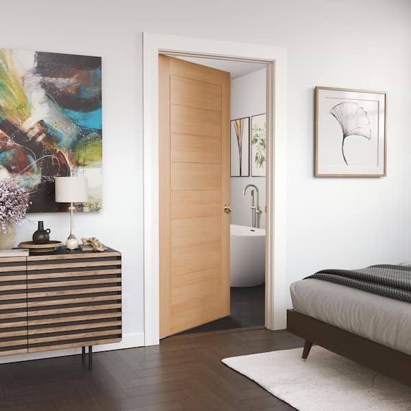36 in. x 80 in. 8 Panel Groove Left-Handed Solid Core Clear Finish White Oak Wood Single Prehung Interior Door