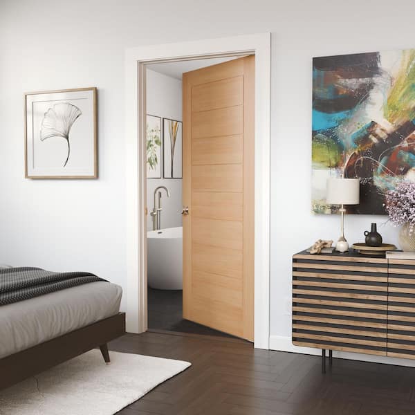 36 in. x 80 in. 8 Panel Groove Right-Handed Solid Core Clear Finish White Oak Wood Single Prehung Interior Door
