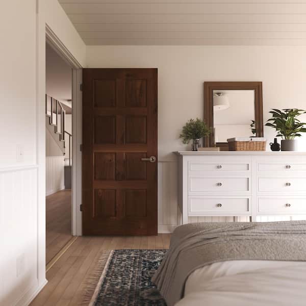 36 in. x 80 in. 8 Panel Left-Handed Solid Core Clear Finish Walnut Wood Single Prehung Interior Door