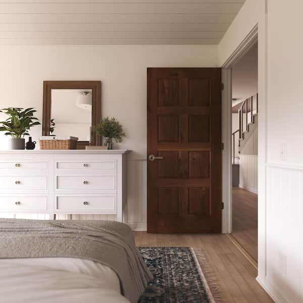 36 in. x 80 in. 8 Panel Right-Handed Solid Core Clear Finish Walnut Wood Single Prehung Interior Door
