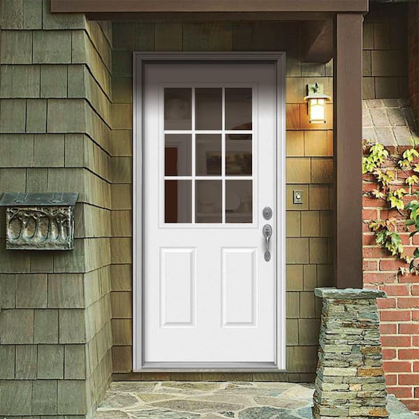 36 in. x 80 in. 9 Lite Primed Steel Prehung Left-Hand Inswing Entry Door w/Brickmould