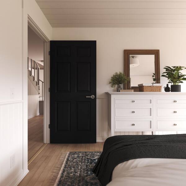 36 in. x 80 in. Colonist 6 Panel Left-Handed Textured Solid Core Black Molded Composite Single Prehung Interior Door