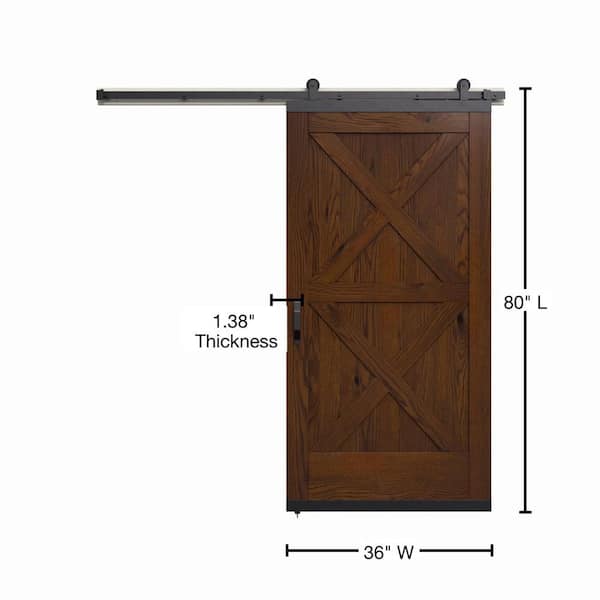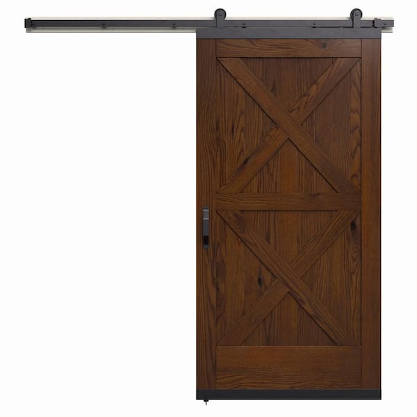 36 in. x 80 in. Karona Crossbuck Chocolate Stained Rustic White Oak Wood Sliding Barn Door with Hardware Kit