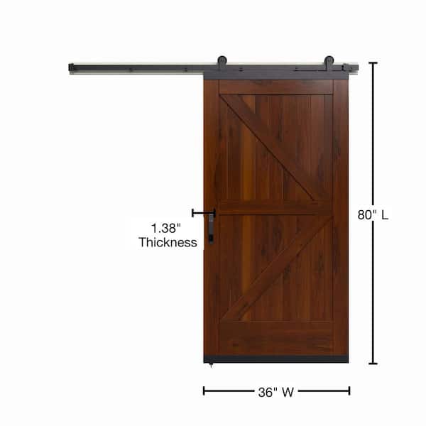 36 in. x 80 in. Karona K Design Chestnut Stained Rustic Walnut Wood Sliding Barn Door with Hardware Kit