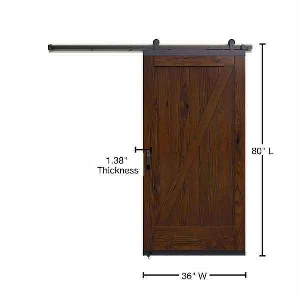 36 in. x 80 in. Karona Z Design Chocolate Stained Rustic White Oak Wood Sliding Barn Door with Hardware Kit
