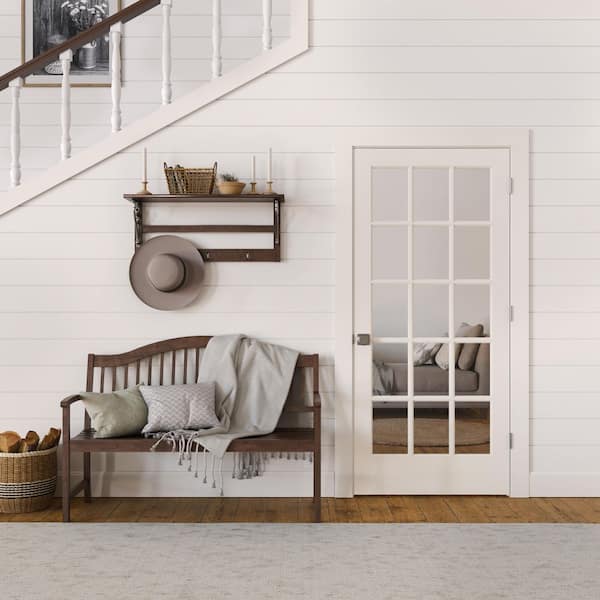 36 in. x 80 in. Left-Handed 15 Lite Clear Glass Primed Solid Core Wood Single Prehung Interior Door with Flat Jamb