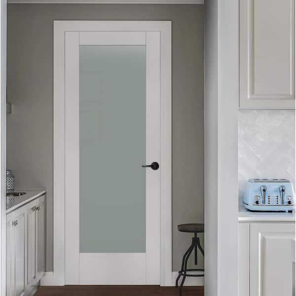 36 in. x 80 in. MODA Primed PMT1011 Wood Solid Core Door Slab with Translucent Glass