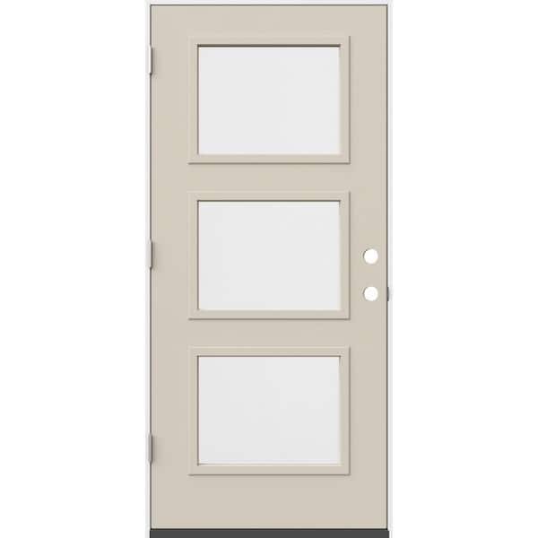 36 in. x 80 in. Right-Hand/Inswing 3 Lite Equal Clear Glass Primed Steel Prehung Front Door