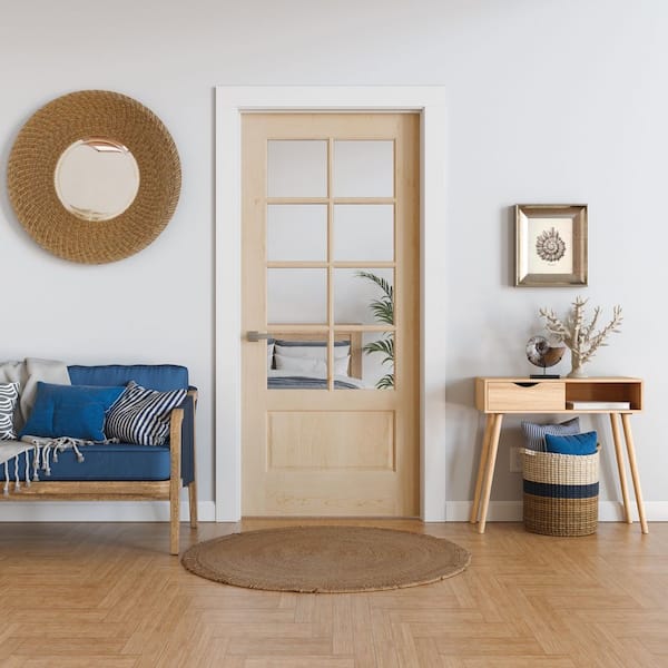 36 in. x 80 in. Right-Handed 8 Lite Clear Glass Unfinished Maple Solid Core Wood Single Prehung Interior Door