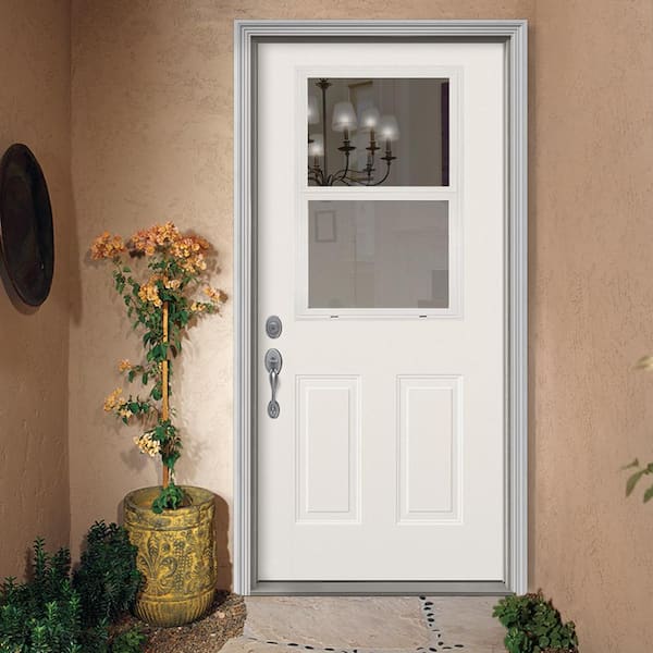 36 in. x 80 in. Venting Primed Right-Hand Inswing 1/2-Lite Clear Steel Prehung Entry Door