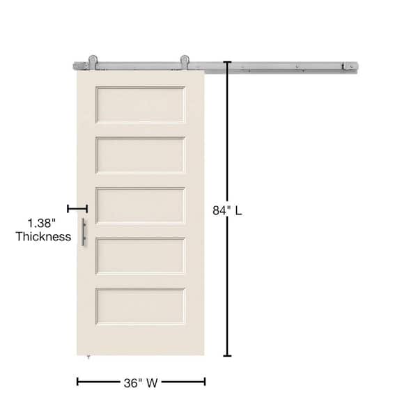 36 in. x 84 in. Conmore Primed Smooth Molded Composite MDF Barn Door with Modern Hardware Kit