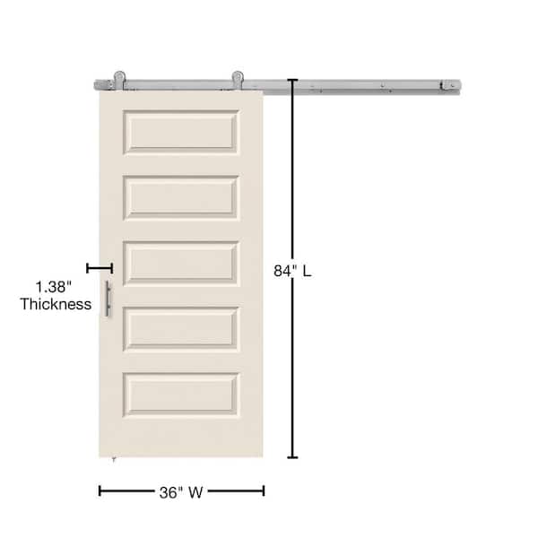 36 in. x 84 in. Rockport Primed Smooth Molded Composite MDF Barn Door with Modern Hardware Kit