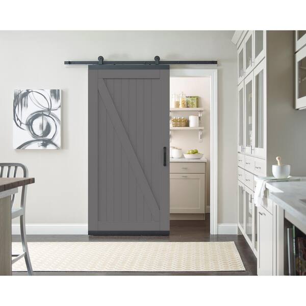 42 in. x 80 in. DesignGlide Rustic Weathered Stone Painted Wood Sliding Barn Door with Hardware Kit
