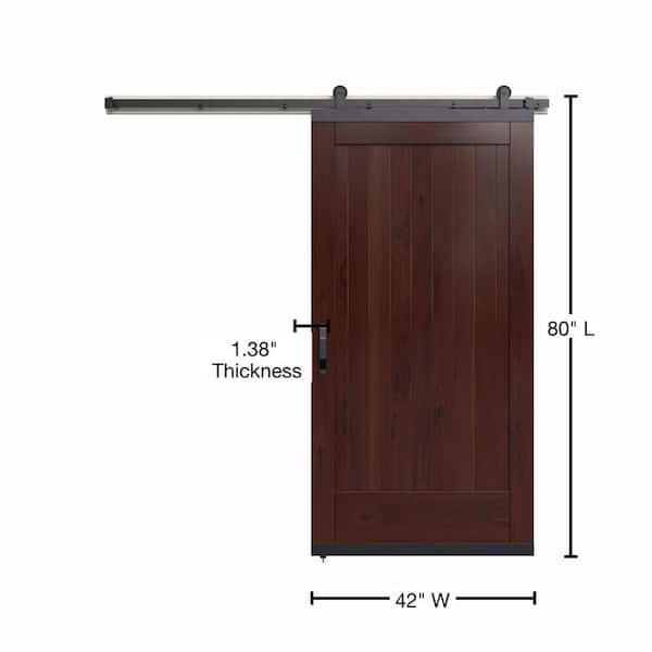 42 in. x 80 in. Karona 1 Panel Spice Stained Rustic Walnut Wood Sliding Barn Door with Hardware Kit