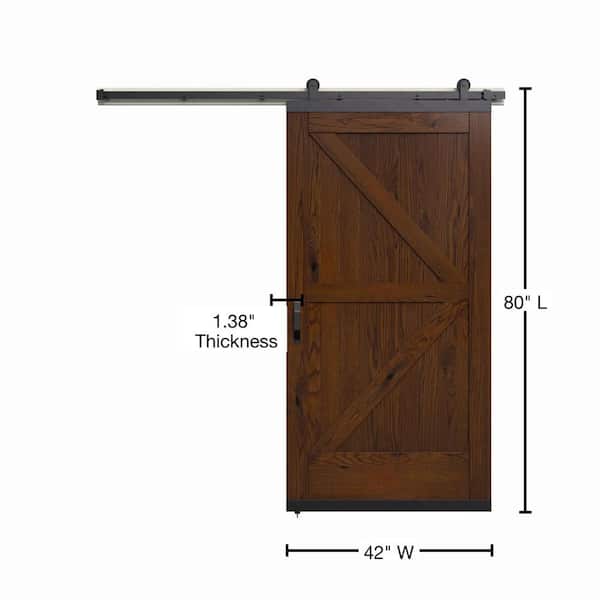 42 in. x 80 in. Karona K Design Chocolate Stained Rustic White Oak Wood Sliding Barn Door with Hardware Kit