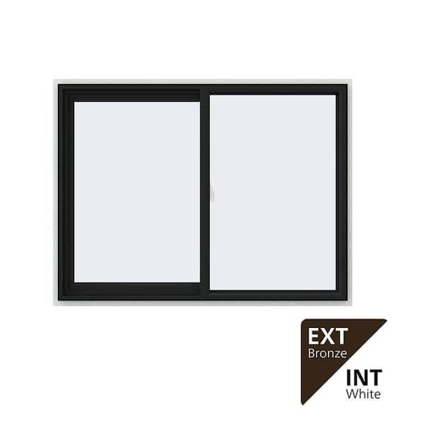 48 in. x 36 in. V-2500 Series Bronze Exterior/White Interior FiniShield Vinyl Left-Handed Sliding Window w/Mesh Screen