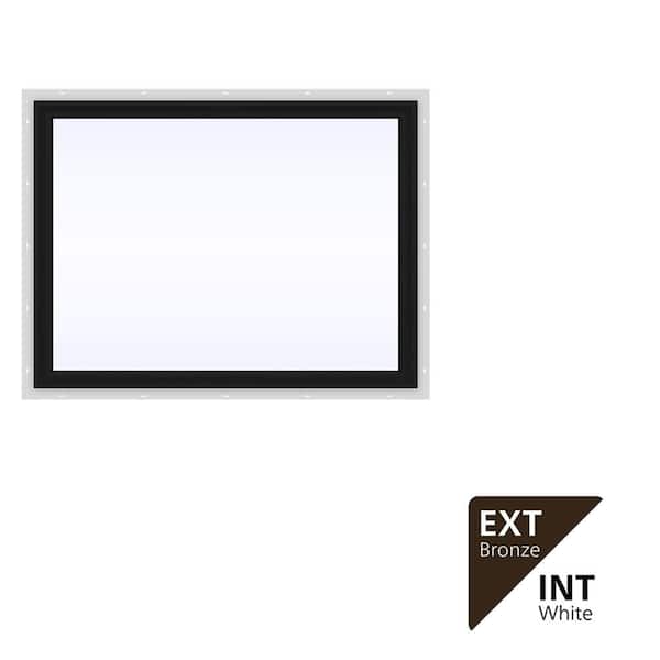 48 in. x 36 in. V-2500 Series Bronze Exterior/White Interior FiniShield Vinyl Picture Window w/ Low-E 366 Glass