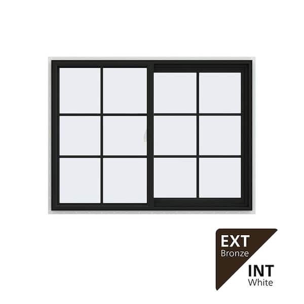 48 in. x 36 in. V-2500 Series Bronze Exterior/White Interior FiniShield Vinyl Right-Handed Sliding Window Colonial Grids