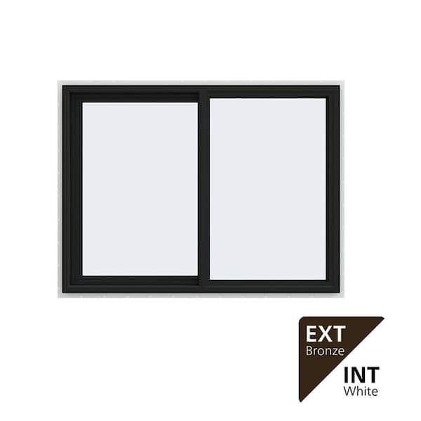 48 in. x 36 in. V-4500 Series Bronze Exterior/White Interior FiniShield Vinyl Left-Handed Sliding Window w/ Mesh Screen