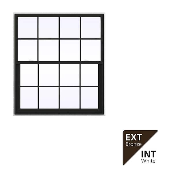 48 in. x 42 in. V-2500 Series Bronze FiniShield Vinyl Single Hung Window with Colonial Grids/Grilles