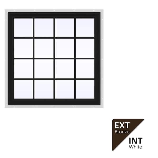 48 in. x 48 in. V-2500 Series Bronze Exterior/White Interior FiniShield Vinyl Fixed Picture Window, Colonial Grid/Grille