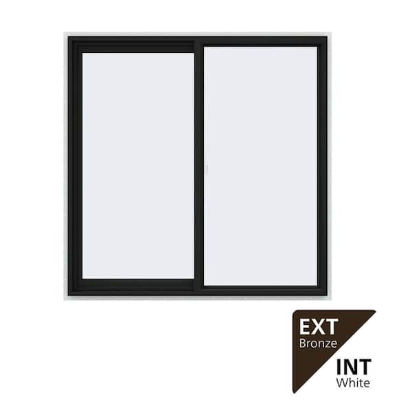 48 in. x 48 in. V-2500 Series Bronze Exterior/White Interior FiniShield Vinyl Left-Handed Sliding Window w/Mesh Screen
