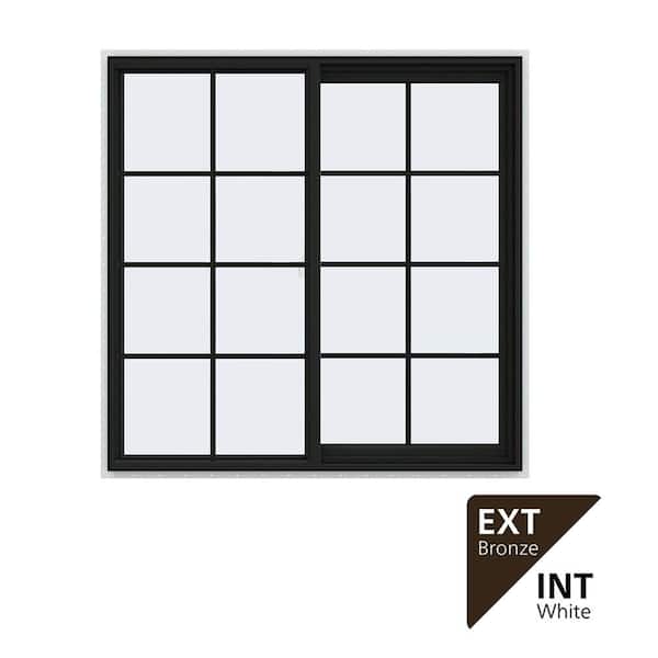 48 in. x 48 in. V-2500 Series Bronze FiniShield Vinyl Right-Handed Sliding Window with Colonial Grids/Grilles