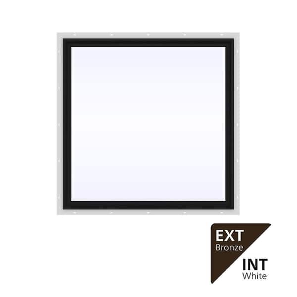 48 in. x 48 in. V-4500 Series Bronze Exterior/White Interior FiniShield Vinyl Picture Window w/ Low-E 366 Glass