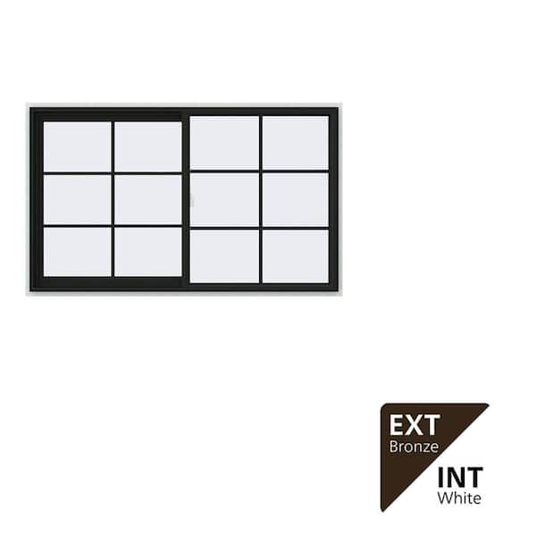 60 in. x 36 in. V-2500 Series Bronze Exterior/White Interior FiniShield Vinyl Left-Handed Sliding Window w/Colonial Grid