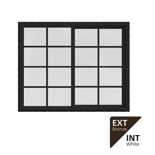 60 in. x 48 in. V-4500 Series Bronze Exterior/White Interior FiniShield Vinyl Left-Handed Sliding Window w/Colonial Grid