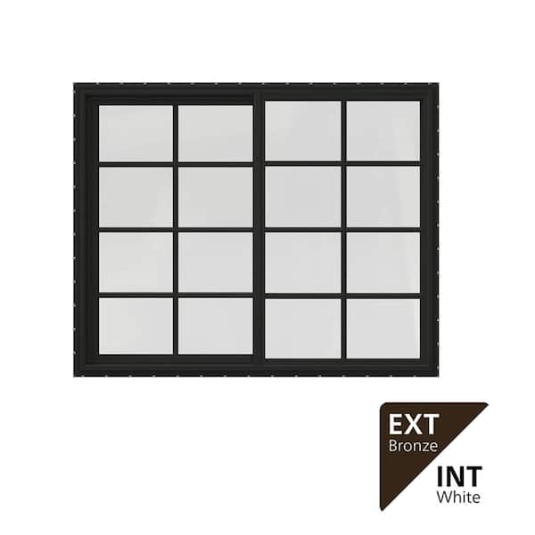 60 in. x 48 in. V-4500 Series Bronze Exterior/White Interior FiniShield Vinyl Right-Handed Sliding Window Colonial Grids