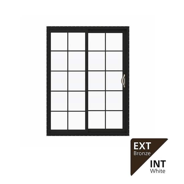 60 in. x 80 in. V-2500 Series Bronze FiniShield Vinyl Right-Hand 10 Lite Sliding Patio Door w/White Interior