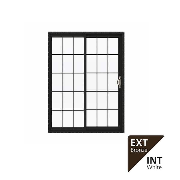 60 in. x 80 in. V-2500 Series Bronze FiniShield Vinyl Right-Hand 15 Lite Sliding Patio Door w/White Interior